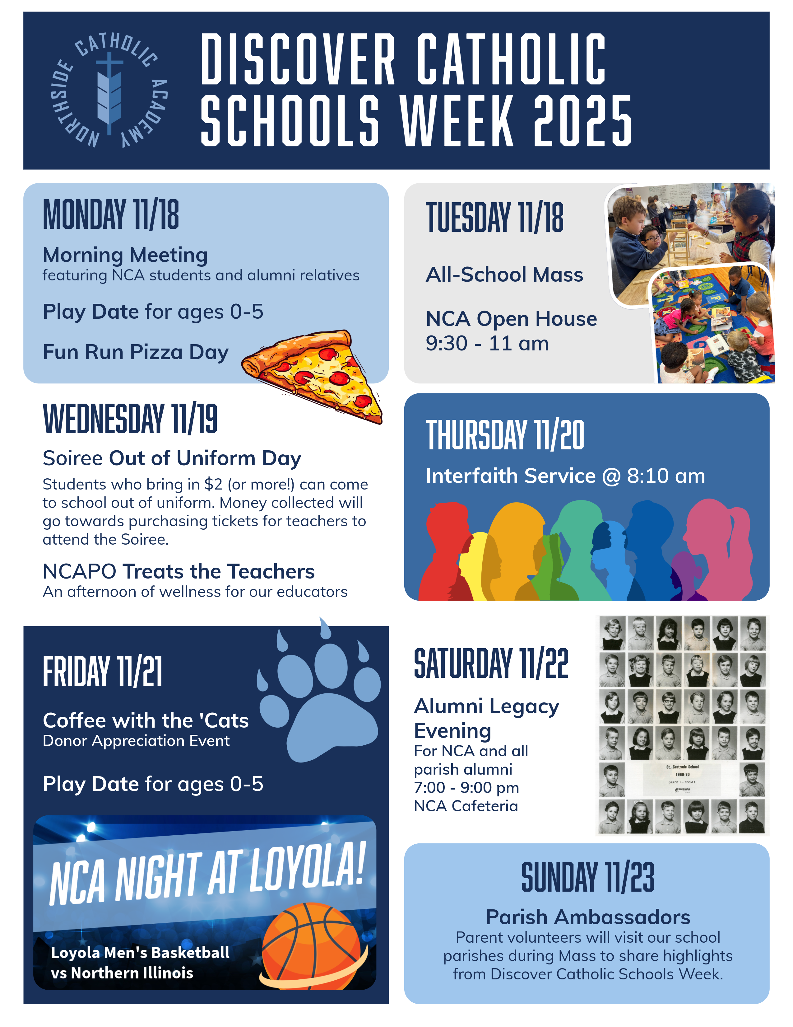 Parish Day: NCA Parish Ambassadors will visit St. Gertrude; Mary, Mother of God; St. Jerome; and Holy Child Jesus to share this week's events with their community.